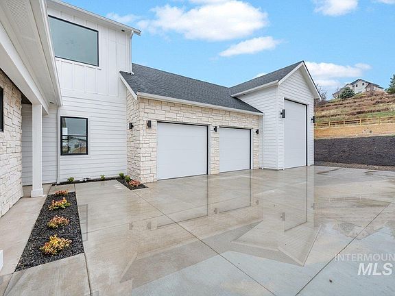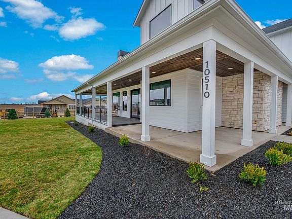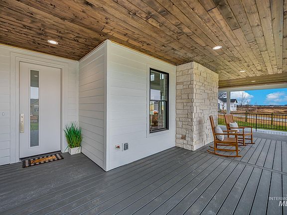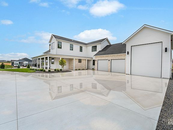 GPS neighbors house to find Property: 6595 Foothill Rd, Star. ONE ACRE lot in brand new Ryken Meadows neighborhood. Minimum CC&Rs with private road agreement. This 3,060 SqFt two-story home features 3 beds, 2.5 baths, office & RV garage plus 2 car garage (total garage 1,453 SqFt). Gorgeous vaulted ceiling w/beams in great room & gas fireplace w/stone to the ceiling. Dining area has 8' sliders that open to wrap around deck to extend your living outside. Kitchen boasts upgraded Bosch appliances w/built-in oven & microwave, built-in 36" fridge, 5 burner gas cooktop, large island with sink, leathered granite counters & butler's pantry w/prep sink. Main level features office w/French doors and master en suite w/dual vanity, heated floors, soaker tub, tile shower & walk-in closet. Upstairs has two bedrooms, a dual vanity bathroom & built in desk in loft area. Other amenities include engineered hardwood floors, $30k Pella wood/aluminum windows & extensive landscaping/fencing. Like single-level living on main floor!