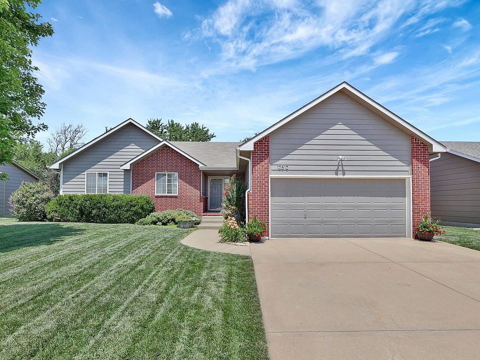 Wonderful ranch home in the desirable Goddard schools with NO SPECIALS!! This home features 5 bedrooms, 3 baths & a 2 car garage on a private lot in the Harvest Ridge neighborhood close to Pawnee Prairie Park. When you pull into your driveway, you will notice the beautifully landscaped yard. As you walk into this delightfully decorated home, you will see newer vinyl plank flooring throughout the living room, kitchen & laundry room. The living room has a gorgeous stone wood burning fireplace with a gas starter to keep you cozy during the winter. The dining room/kitchen combo is great for all of your family meals. Off of the kitchen is a walk-through laundry room. The master bedroom offers its own master bath to help you unwind from a long day. An additional 2 bedrooms & a guest bath compliment the main floor. As you go down the stairs to the basement, you will notice the family room is very spacious. There are 2 more large bedrooms & a nice size bathroom in the basement, along with an oversized storage room. Now let's talk about the outside of the home. The backyard is AMAZING!! You can sit on your covered back deck enjoying the peace & quiet of no backyard neighbors, all while watching your family play on the fantastic play set that stays with the home. The sprinklers will keep your yard looking green all summer. NEW Hot Water Heater in 2021 & ALL APPLIANCES STAY. This home is the key to your happiness!