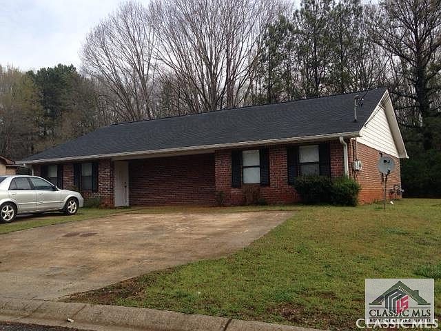 Investment property. Purchase and live in one side and rent the other. 2 bedroom 1.5 bath units with great room, dining area and galley kitchen. Large pantry area and laundry room leading out to back yard area with patio and storage room. Bedroom in back corner has a 1/2 bath and one full hall bath to share between the bedrooms. 4 side brick. Close to UGA campus and shopping. Unit 107 is vacant and unit 105 is tenant occupied lease ends end of May.