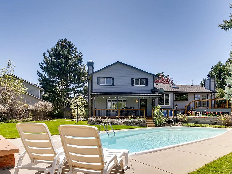 Enjoy a beautifully maintained home in an established neighborhood in DTC with highly rated schools, swimming pools, tennis courts, parks, and walking trails all right outside your front door. This light filled tri-level home at the top of a cul-de-sac boasts hardwoods on the main level, 3 bedrooms, 4 bathrooms, 2 skylights, and a walkout basement. Prepare to fall in love with the backyard! Sit on your expansive deck overlooking a beautiful sparkling private pool. With multiple areas to enjoy: deck, covered patio, firepit, pool, the backyard is designed for entertainment. The mature trees, bushes, flowers, and grass create an outdoor oasis. The finished walkout basement includes a spacious bathroom with a large jacuzzi tub, gas burning stove, and has the possibility of a kitchenette or bar with water hookups. Newer kitchen appliances, air conditioning, and furnace make this an excellent home!