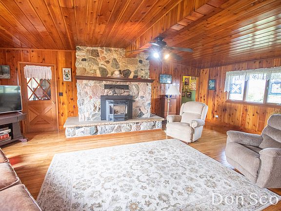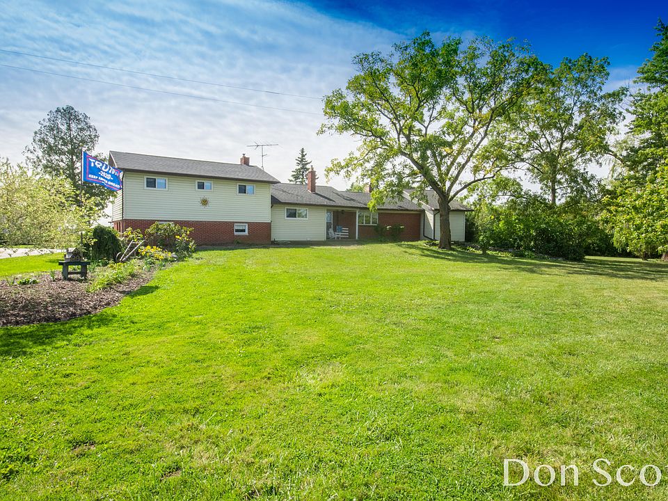 5 acre country estate - ''where the wind comes whispering over the plain!'' featuring commercial quality 56'*66' 2 story sized outbuilding and HUGE potential. This 3 bed 2 1/2 bath home with a flare of Americana- is located just outside of Ravenna - a nice commute to Muskegon or GR. Check out the beautiful floor to ceiling stone fireplace with pellet stove insert, knotty pine and hardwood floors for the old country feel! Formal dining & front entrance , sun room, rec room with a classic wood bar and 2nd kitchen. Use the outbuildings- a fantastic add- for your toys, workshop, hobbies, huge campers or turn it into a hobby farm!
