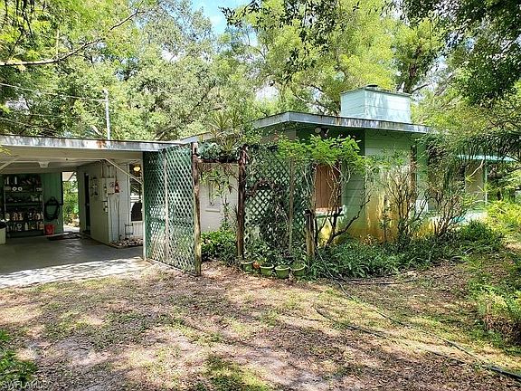 Very Unique property with approx. 121 ft of Orange River Blvd frontage; total of approx. 1.2 acres. This property has two homes (only one strap but two sep power meters). The front (main) property is a two bedroom CBS home. Second property is a 2 bedroom wood frame (rustic interior). In addition, there is a workshop with an attached bedroom and bath, along with other outbuildings. Property has two wells, one is a Kinetico water storage/systems, 3 septic systems, outdoor fire pit. Property is very lush with vegetation with a heavy canopy of trees. Both homes have screened in entry/lanai areas.