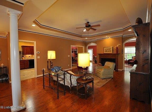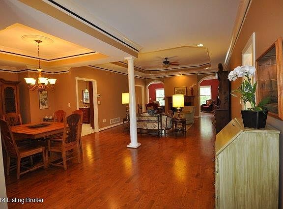 This home features an open floor plan with a trey-ceilings, a double-sided fireplace enjoyed from both the living room and family room, beautiful wood floors throughout, tile file floors in kitchen, bathrooms and laundry room. The master suite includes a walk-in closet and a luxury bath. There is a second bedroom and a second full bath. Monthly maintenance fee includes water and sewer, trash pickup, grounds keeping, master insurance and snow removal. The Villas at Dorsey is a lovely, quiet, and very convenient community located near shopping and restaurants.