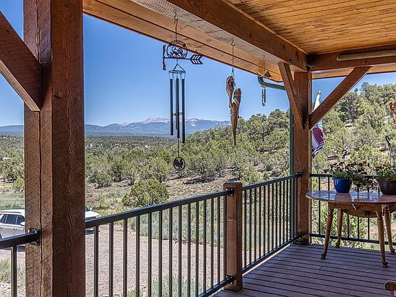Here is a house that is also a home and checks all the boxes. Built in 2006 with privacy, views, and pride of ownership in mind. Built off and away from the road, and towards the end of Cedar Mesa Ranches the home was built taking full advantage of its position on the lot to maximize your views. There is a mature landscaping on most of the property. A seasonal stream flows through the front yard, and there are wide open gorgeous views of the La Plata Mountains to the east. And you don't see your neighbors. The home was built with quality in mind. Stacked stone and log exterior, this home has been treated very well and is in great condition. Added upgrades to the insulation and roofing system were done to make this home energy efficient. Keeping you cool in the summer and toasty in the winter. The main level of the home is very efficient and easily manageable. The open floor plan feels cozy with windows letting in the beautiful views, a wood stove in the living room, a large dining area right off the kitchen making it perfect for entertaining. The front covered wrap around patio and large deck are great for enjoying the sunrises and sunsets with a good cup of joe or your beverage of choice. Making life easy, you'll find the master suite on the main level with it's own master bath. To complete the main level there is a laundry room, full guest bathroom, and guest bedroom. Downstairs you will find another living room. There is a wet bar with sink which would be easy enough to convert to a second kitchen if you need it. The third bathroom is also located downstairs with doors opening to the great outdoors. There is a third full bathroom located downstairs.. Rounding out this wonderful property is a large 30'x40' 1,200 sqft detached garage/shop. It was built down by the road and away from the house to keep the home feeling serene and peaceful. This home has too many unique touches and quality finishes to list, so you need to see it today! Come visit and you may not want to leave.