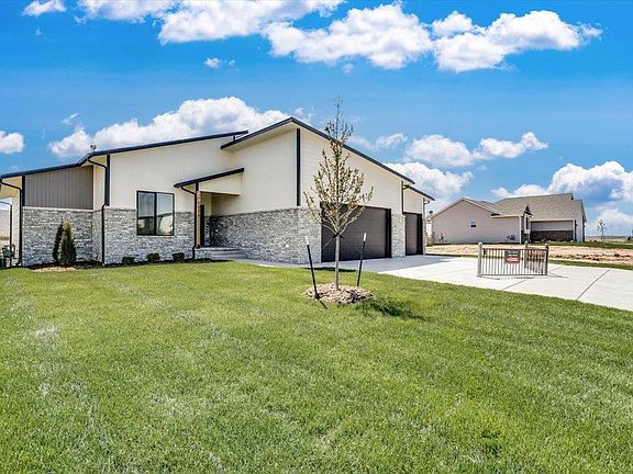 Model Home now for sale! Make this Fall 2024 Pick of Parade winner yours today! This model has received wonderful feedback and is sure to impress! The "Wesley" by TW Custom Homes is a showstopper with it's modern elevation and open floor plan concept. Luxury finishes can be found throughout this 5 bed, 3 bath home. The statement fireplace wall is a beautifully thought out focal point of the living area. The primary bedroom features an elegant ensuite bathroom and walk-in closet. The covered deck is perfect for all your outside events and gatherings. The spacious, fully finished basement features a wet bar and large storage area. This model also won in the 2024 Fall Parade of Homes "basement" category! Irrigation, well, sod and sprinkler system is included. In the highly sought after Goddard School District. Schedule your showing today! Taxes and specials are estimated. All information is deemed reliable but not guaranteed and is subject to change without notice.