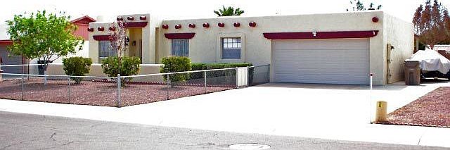 Located in the Country Meadows Subdivision. Features for this Santa Fe Style Home Include: 2 bedrooms, 2 bathrooms, formal living room with fireplace, formal dining room, eat-in kitchen, dark oak cabinets, breakfast bar, family room, neutral and two-tone paint throughout, tile and carpet flooring, ceiling fans, covered patio with Saltillo tile flooring, rear storage and block fencing, desert front landscaping, 2 car garage, RV gate, desirable N/S exposure and much more! Take a look today!