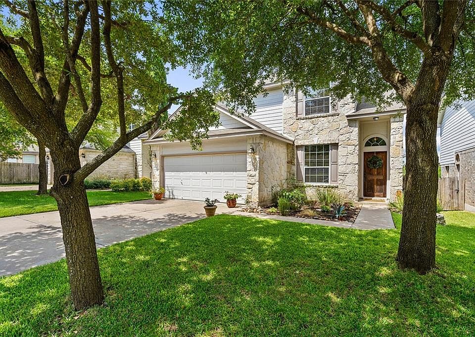 GREAT location - Loop street with little traffic and it backs to greenbelt! Open, bright and cheerful family room and kitchen. Lots of wonderful light and open space. Great covered patio with no homes behind this one. Enormous pantry and utility room. Formal dining is next to entry and is a perfect setting for your home office. Spacious master upstairs with luxurious master bath that includes double vanity, separate shower and over-sized tub. 3 large secondary bedrooms up too.