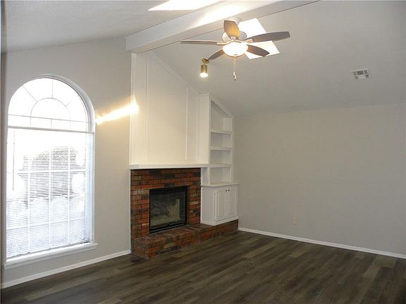 Darling 3 bed 2 bath home with lots of upgrades. Large open living area that has a great fireplace and spacious. Brand new hard flooring in living room and hallway, tiles on bathroom and kitchen. Vaulted ceiling and a lot of built-ins.AMaster bedroom has trayed ceilings & back patio access, updated bathroom.ACharming backyard with covered patio & storage shed.AGreat location with less than a mile from I-35 for quick commutes and tucked back in a charming neighborhood.
