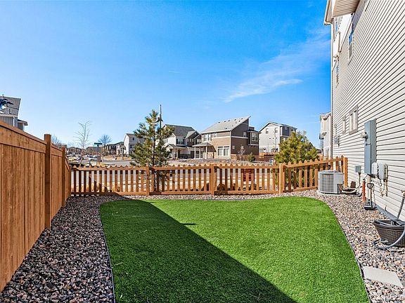 Like a Model Home. Wonderful location. Designer touches and upgrades throughout—updated kitchen with quartz counters and large island. The kitchen opens to the spacious living room featuring a modern fireplace with built-in tech ports: main level powder room and 2 car attached garage. Upstairs on the 2nd level you will find a primary retreat with an attached bathroom and large walk-in closet. 2 additional secondary bedrooms with a shared full bath and laundry room complete this level. On the 3rd level is an amazing "smart space" perfect as a family room, office, playroom, or bonus room. Off the smart space is a private ROOFTOP DECK. This carriage home is low maintenance and has a professionally finished zero-scaped yard and patio with a gas line. It is located in the award-winning Reunion neighborhood. Close to neighborhood amenities, community center, pool, and coffee. Quick drive to DIA.** New carpet New Paint Shows like a NEW home