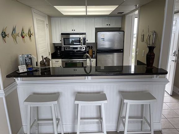 This beautiful well-managed individually owned 1 bedroom/1 bathroom beachfront 8th floor condo rests on 600 feet of prime sugar white sand to play on and emerald green waters to play in. Begin your first day in this beach home on the private balcony of your condo with a cup of coffee and gorgeous views of the beach and gulf. Welcome to your beach condo and your home away from home. Your condo rental boasts incredible views from your private balcony and a spacious and fashionably decorated interior complete with all the conveniences of home. The combination of chic and comfort makes this a perfect place for you alone or with your loved one's, Enjoy a breathtaking view of the gulf immediately as you walk in from the floor to ceiling glass windows. Slide the doors open to your private balcony to feel the ocean breeze on your face as your enjoy your morning coffee or drink at sunset. A cozy couch sits near the eight-foot sliding glass doors offering simultaneous views of both the private balcony and the large entertainment center with a flat screen TV. The open kitchen is equipped with granite countertops and all utensils, plates, cookware and necessities you'll need to prepare a family meal or romantic dinner. The master bedroom is furnished with a beautiful and comfortable king size bed perfect for a good nights rest after a long day at the beach and breathtaking views of the gulf from the sliding glass doors allowing for balcony access as well!