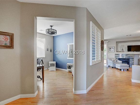 This is a beautiful single story home is Summerlin. Easy access to both the 215 and Summerlin Pkwy. Home is in great condition and is a must see!! Beautiful wood flooring throughout entire home, with custom tile in the kitchen to go with beautiful granite counter tops. 2 BD/ 2 BA with extra office or den. The backyard has been wonderfully landscaped and includes a cover patio and brand new storage shed.