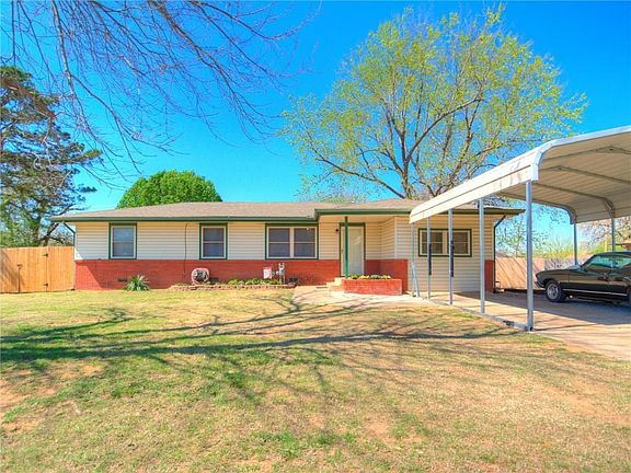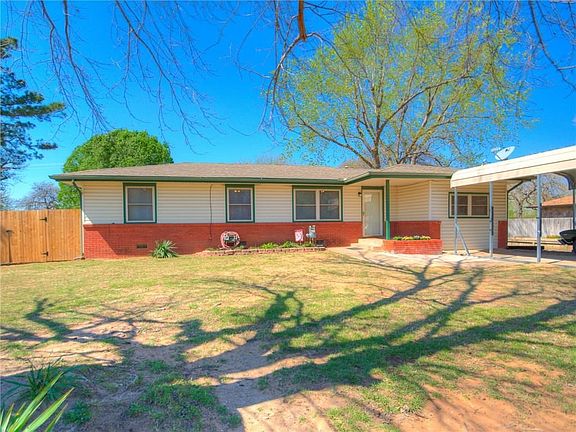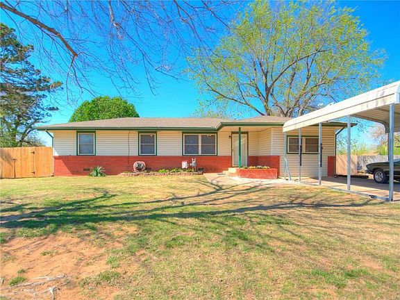 Where else will you find a 3 bedroom, 2 bathroom home with a huge shop in Choctaw Schools for this price?! Great layout-garage conversion allowed for a larger living room and master bedroom with its own full bath and laundry area. Warm hardwood flooring in living and hall are beautiful and durable. 2nd bathroom features a jetted tub. Amazing 30' x 24' shop with 6' wide porch, 6" concrete slab, separate breaker, and TV mounts installed inside and out so you never have to miss the big game. Several established trees provide shade and beauty. Seller reserves shop heater and propane tank.