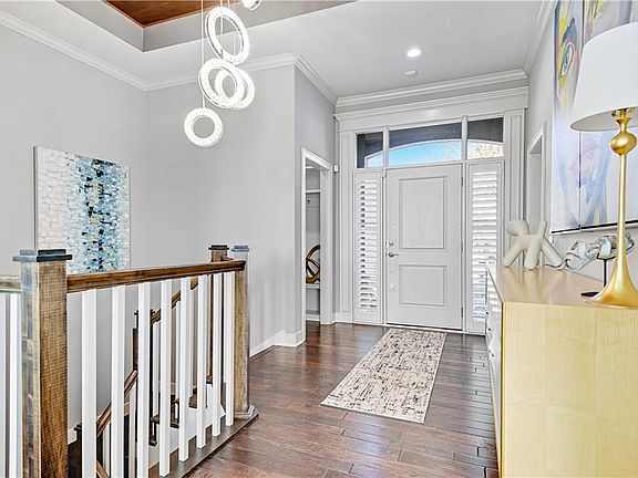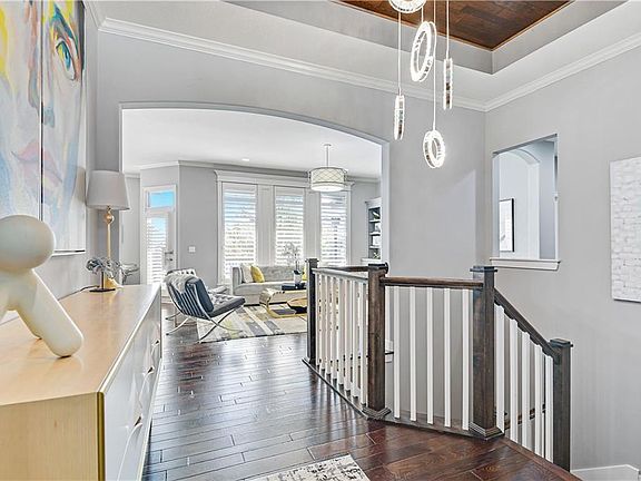 Detailed to perfection with chic updated finishes and fixtures throughout. A front courtyard entry greets you as you approach. Four outdoor living spaces to enjoy relaxing or entertaining including two patio areas with firepit and a deck overlooking the fenced yard. Over $100,000 in upgrades and maintained meticulously. Waterfall edge on kitchen island brings a designer touch with high end tile backsplash and roomy walk-in pantry. Luxurious primary bath with heated floors, free standing tub & oversized shower with stunning tile for a “WOW” factor. Spacious owner's bedroom walks out onto the deck. Three bedrooms on main level, one with beautiful accent paneling would make the perfect office. Hard to find walkout lower level includes a bedroom, full bath and also features an amazing bar w/wine cellar. Large newly finished flex space can be a workout room, hobby room or theater area. Extras and upgrades: -Radiant heater in garage on independent thermostat -Under deck ceiling system installed on lower porch/below covered patio -LED landscape lights front and back on a timer system -Custom fitted plantation shutters -Hidden storage closet in basement flex room.