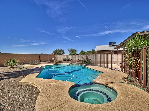 GREAT HOME ! DOUBLE FRONT DOOR ENTRY INTO LIVING ROOM.THE MASTER BEDROOM HAS A HUGE WALK IN CLOSET. DIAGONAL TILE. KITCHEN HAS STAINLESS STEEL SMOOTH TOP RANGE OVEN, WASHER DRYER AND REFRIGERATOR. AND BATHROOMS HAVE BEEN REMODELED, TOWEL WARMER IN MASTER BATHROOM. A BIG BACKYARD WITH A PLAY POOL AND SPA,LARGE ROOMS WITH A SEPARATE DINING AREA AND FAMILY/LIVING ROOM. CLOSE TO THE 101,THE NEW COYOTES STADIUM,AND CARDINALS STADIUM.HOME IS SOLD AS-IS.