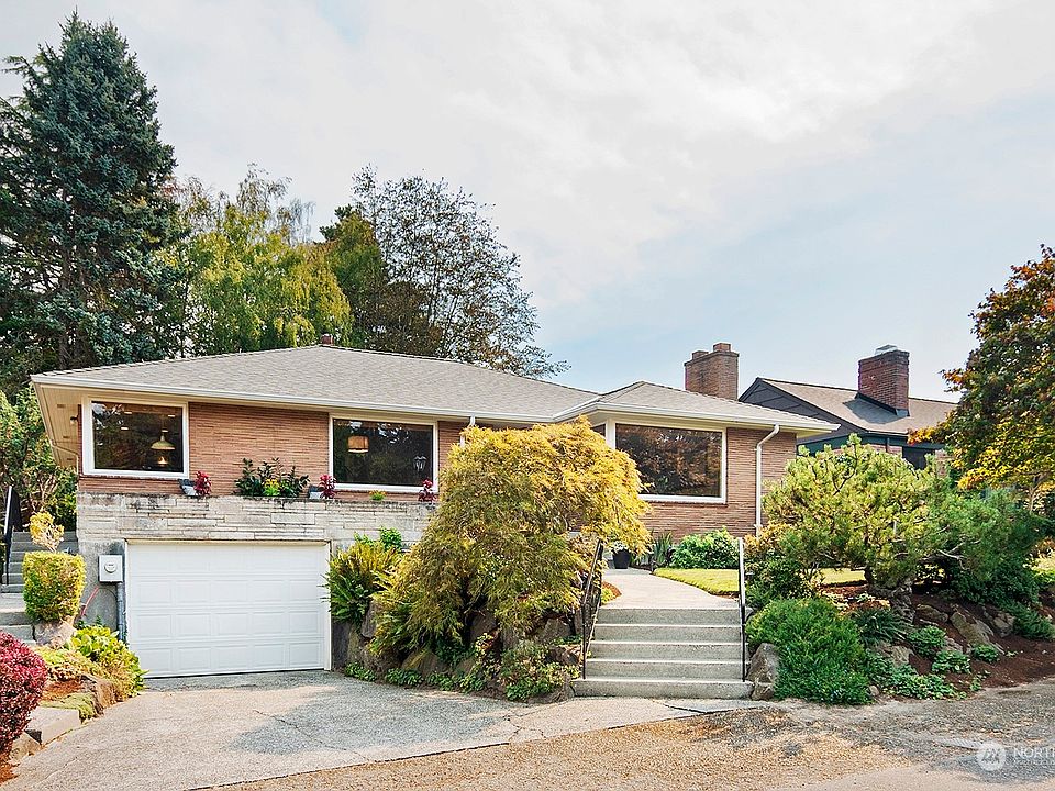Welcome to Blue Ridge! This mid century, west facing, brick home is a peaceful retreat minutes from the heart of the city. Home showcases original trim, beautiful cabinets, retro tile and hardwood floors. The kitchen has a built-in hutch, breakfast nook, stainless steel appliances and a Viking gas stove. 2 bdrms, den & full bath on main & 3rd bdrm plus 3/4 bath on lower lever. The private backyard and patio is a tranquil escape with mature landscape. Community has access to two private parks, tennis courts, community pool, basketball and pickle ball courts, children’s play areas and private beach with amenities. Trails to Carkeek Park are a short walk . This home has been well cared for by it's owners for 33 years. 2 car tandem garage.
