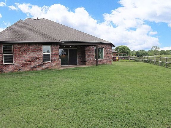 Fantastic home located on a cul-de-sac, greenbelt lot in Collinsville Schools. Split floor plan with inviting entry way that leads to an open concept kitchen and living area. Peaceful view out oversized sliding glass door to yard and greenbelt. Living room with fireplace and built-ins. Kitchen with LARGE island, pantry, gas range and more. Master bath with HUGE tiled shower and double vanity, also large walk in closet. Garage is oversized with lots of storage space.