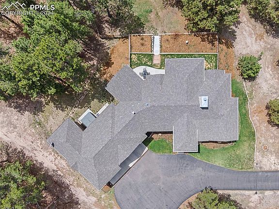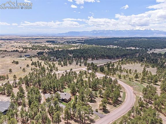 This one has it all! Trees, Pikes Peak views, newer+prime location!2018 custom built 4 bedrooms, 4 baths plus flex/office/sunroom w/4 car garage. This 3,800+ sf ranch style home is located on five beautifully treed acres in popular Black Forest. Close to everything including Falcon or Springs shopping/restaurants (7 min), schools, parks, and trails. Zoned for horses, located on a corner lot with a beautiful Pikes Peak view perfectly framed among towering Ponderosa Pine. Private+secluded with only 5 homes on the culdesac, this home features expert landscaping w/garden terracing plus 24x36 two stall barn fully insulated w/box stalls, mats, tack room & wide alley w/hay storage. Easily converted to a multipurpose shop w/electricity. As you drive up the winding, paved drive, enter the home w/ a nice, open living room , huge glass doors & the view of Pikes Peak with stone wood burning fireplace, and open concept plan. Custom designed with lots of counterspace, double ovens, gas cooktop, and beautiful cabinetry and wonderful hardwood floors. Another feature is the enclosed, four season sunroom (or heated flex room/office) which brings the sun and trees right into the home for a wonderful nature ambience! The main level master retreat & bath are also on the main level w/ his & hers closets. The basement features a relaxing family room, another flex area perfect for exercising/crafting plus 3 nice sized bedrooms + 2 baths. Other amenities include touch faucets, new furnace, soft close drawers, smart house features, exterior Christmas light outlets, low voltage wiring, landscape lights, plumbed wet bar, and hot wtr recirc. Outside amenities are covered decking off living room creating a perfect entertaining space along w/the patio outside and fenced yard. Property is partially fenced (had horses) and has a fenced paddock/exercise area plus round pen. These properties are hard to find - newer and in the trees. Easy commutes to Springs and Denver, come & enjoy