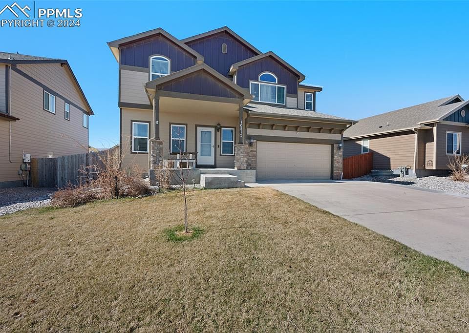 Welcome to the highly desirable Meadows At Lorson Ranch community, where tranquility meets meticulous craftsmanship. This quiet neighborhood offers a serene atmosphere, ensuring a peaceful retreat within the bustling city. As you step into this meticulously maintained home, you'll immediately notice the spacious interior and thoughtful design. Enjoy freshy paint on the main level! The combination of formal and informal living spaces creates a harmonious flow throughout the house, providing both comfort and functionality. The abundance of natural light enhances the welcoming ambiance, particularly in the open floor plan that seamlessly connects the family room, kitchen, and dining area. A cozy corner fireplace in the family room adds warmth and charm to the living space. The chef-worthy kitchen boasts new appliances including an LG Instaview refrigerator, microwave with air fryer, and dishwasher. Granite countertops with bar-height seating, walk-in pantry, & a door leading to the expansive patio make this kitchen perfect for entertaining or enjoying casual meals. Upstairs, discover four spacious bedrooms, including a large primary suite with dual closets and a luxurious 5-piece en-suite bath. The convenience of an upstairs laundry room adds a practical touch to daily living. The finished basement offers additional living space, with a large family room that can easily be divided into separate areas to suit your lifestyle. An extra bedroom and nearby full bath make this space great for guests' privacy. Step outside to the large private backyard, a perfect haven for springtime enjoyment and outdoor activities. The 3-car attached garage comes equipped with a new electrical vehicle charging station, a Smart Garage door, and a quiet garage door opener for added convenience. Enjoy the proximity to a nearby park and the convenience of being near the elementary school. With a nice view, this property truly captures the essence of comfortable and modern living. Welcome home!
