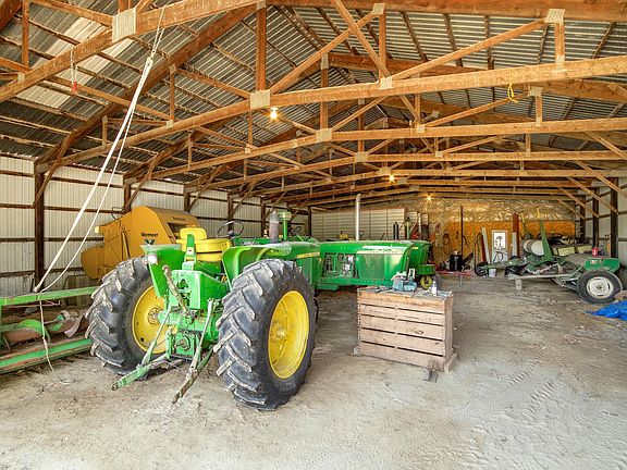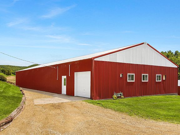 Beautiful country setting, surrounded by gardens! 3 bedrooms on the upper level! The main level features an office, laundry room, master bedroom with bath and walk-in closet, formal dining, living room, kitchen and informal dining room. The informal dining room walks out to the deck, gazebo area, great for entertaining. Several barns, dairy barn, pole building-heated, floor drain, 3 overhead doors, bathroom and large cold storage area, calf shed with lean-to, bunk and automatic waterer. So many places for livestock/animals!