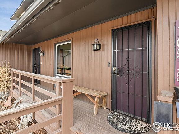 The stunning mountain views on this 1.25 acre property will WOW you.This is county living with all the benefits of suburban access. NO HOA and parking for boats, RVs, trailers and toys, plus an extra storage shed. A paved back patio with raised beds and privacy fencing is the perfect place to enjoy the outdoors.The Living Room has large windows to sit and take in the view of Longs Peak and the Foothills. This home also features an Office/Studio (which could be a 3rd bedroom) with a separate entrance. The Master Bedroom has an en-suite full bath. An additional full bath is next to the Second Bedroom. There is also a separate Dining Room (currently a library). The Eat-In Kitchen with a screened in Front Porch, has 2 Closets, a Pantry plus pull out shelving for plenty of storage. A unique spiral staircase leads up to a Meditation/Yoga Room. There is a 3 Car Garage. The third bay is separated from the first two and is currently used as a workshop with ventilation. Easy highway access