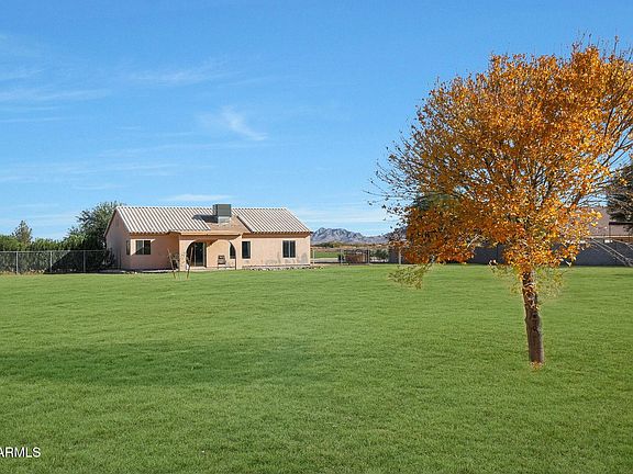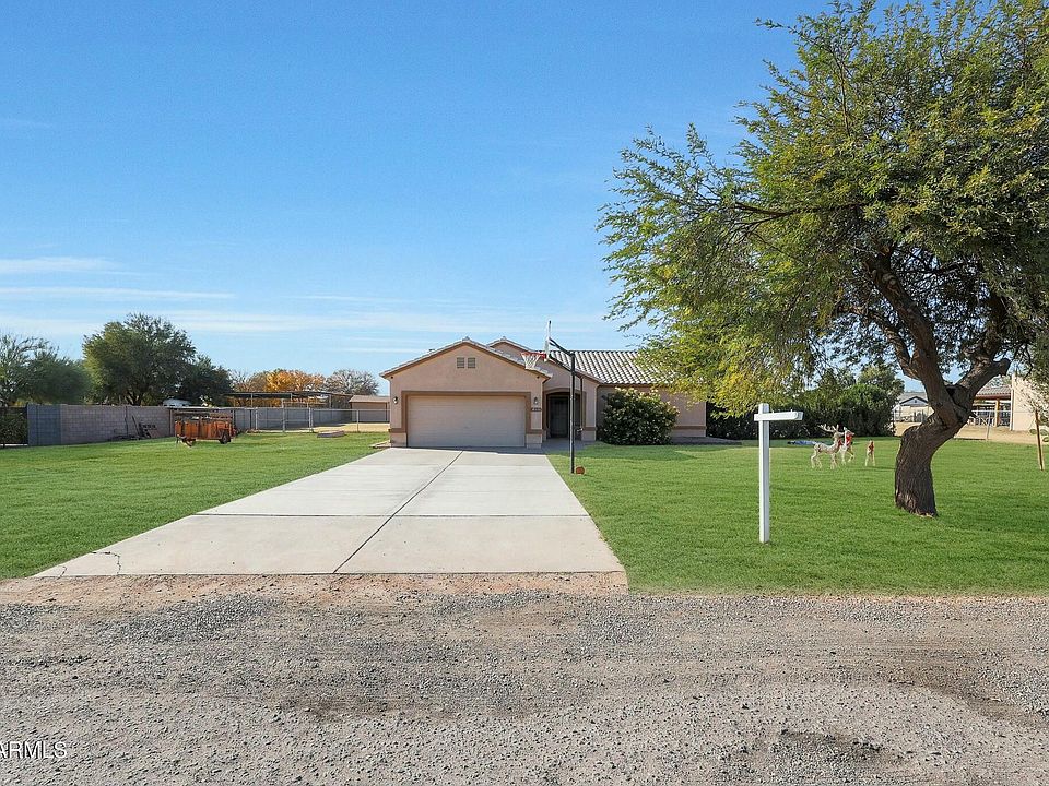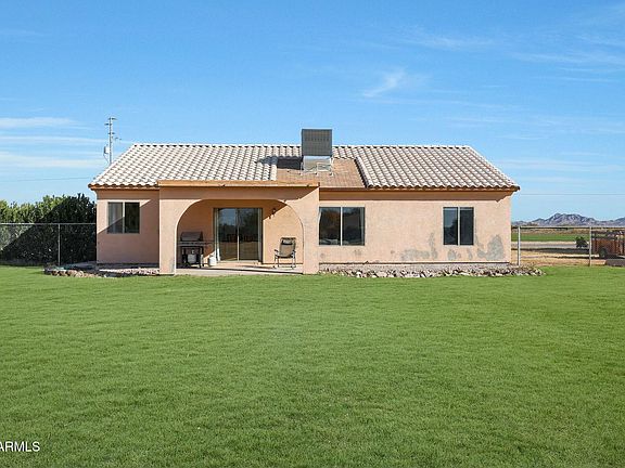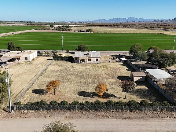 BEAUTIFUL SETTING for this rural horse property in Buckeye with quick and EASY ACCESS to Hwy 85. Farm and mountain views from this 3 bedroom 2 bath home with an open floor plan and large kitchen. Over one acre of fenced, irrigated, level land is ready for you to create your own horse sanctuary, mini farm and gardens or pool oasis. Existing large shed in rear yard could easily be turned into a tack shed or hay barn. Two 220 outlets in garage.