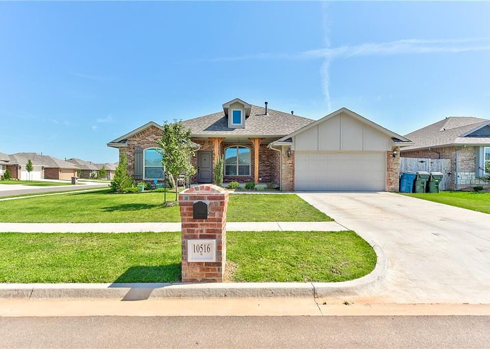 Beautiful, well-kept 4 bedroom, 2 bathroom home just minutes from Tinker Air Force Base. This stunning home is still like new since being built in 2016. The kitchen has granite countertops and is equipped with stainless steel appliances to include dishwasher, microwave, stove, and double door refrigerator. The cabinets were costume made with a beautiful dark stain finish and plenty of space for storage. The master bedroom is spacious and offers a walk-in closet with shelves. The master bathroom is attached to the master bedroom that offers white marble countertops, huge mirror, his and her sinks, a walk-in shower and a large garden tub. The 3 additional bedrooms are spacious and can be transformed into an office, gym, play room, anything! The second bath is also white marble countertop with large mirror, and bathtub. The back patio is large and covered- perfect for a backyard BBQ! This house is absolutely stunning and perfect for a large family! *Also available for lease $1,600 month*