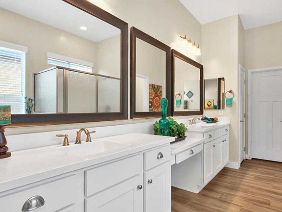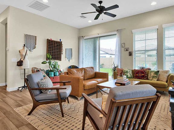 Enjoy gatherings in this stellar open concept, single-level 4 bedroom, 3 bath home w/ expanded covered porch & Hollywood turf & paver driveway in the coveted Mulberry community! Designer upgrades include stylish wood-look tile floors, 5" baseboards & 2" wood blinds. Entertain in a kitchen that will delight any chef w/ a full suite of stainless appliances, crisp, white cabinetry w/ crown molding, glossy, white subway tile backsplash & upgraded granite breakfast bar. A generous master suite provides a private sanctuary complete w/ large ensuite bath boasting dual marble eased-edge sinks, separate tub & shower & framed mirrors. The marvelous secondary bedrooms & baths ensures plenty of room for work, rest or play. Appreciate a lush, grassy backyard from under a generous covered paver patio!
