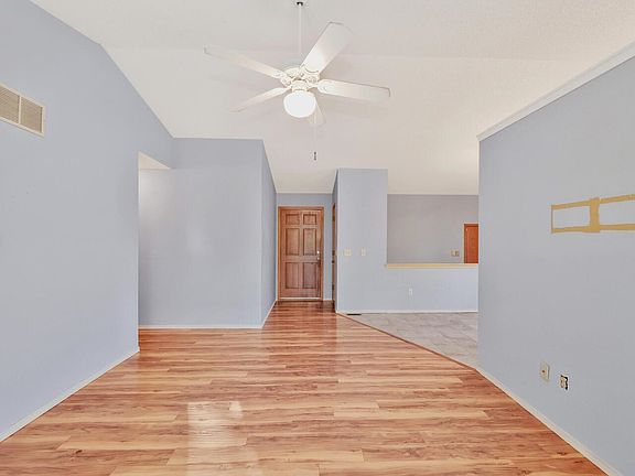 Welcome home to this conveniently located ranch style property in southeast Wichita. Over eighteen hundred square feet of living space that offers your family four bedrooms and three full bathrooms. An open and airy floorplan with vaulted ceilings greets you each day with fresh sunlight. You will also find new laminate flooring in the living room, hallway and bedrooms. The primary bedroom has a full bathroom and walk-in closet. The kitchen/dining room combination has easy to maintain tiled flooring, and the refrigerator, stove and microwave remain for the new owners. In the finished basement you will find a large family room area and one over-sized bedroom with ample closet space. There is also a full bathroom with laundry and more storage. Large backyard with privacy wood fencing and shed.