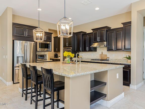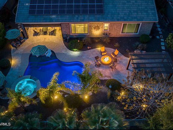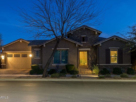What an outstanding property! This stunning home sits on a gigantic lot (12563 sf!) across from a park + is LOADED with features. SOLAR (owned), wall-of-glass to the back, heated saltwater pool, spa, pergola, BBQ, courtyard, fruit trees, new HVAC (2020- w/ 10 year warranty!)- the list goes on and on! 3 bedrooms and bathrooms, den, an additional pocket office + large flex room. Gently lived-in / meticulously maintained, this one will not disappoint. The gourmet kitchen is a showstopper: Espresso cabinets, double ovens, custom backsplash, oversized island, cavernous pantry + butler's pantry- wow! The giant master retreat includes a gorgeous spa-like bathroom. Extreme spray foam insulation / solar make the home incredibly efficient. Eastmark is the crown jewel of the valley- come see why!