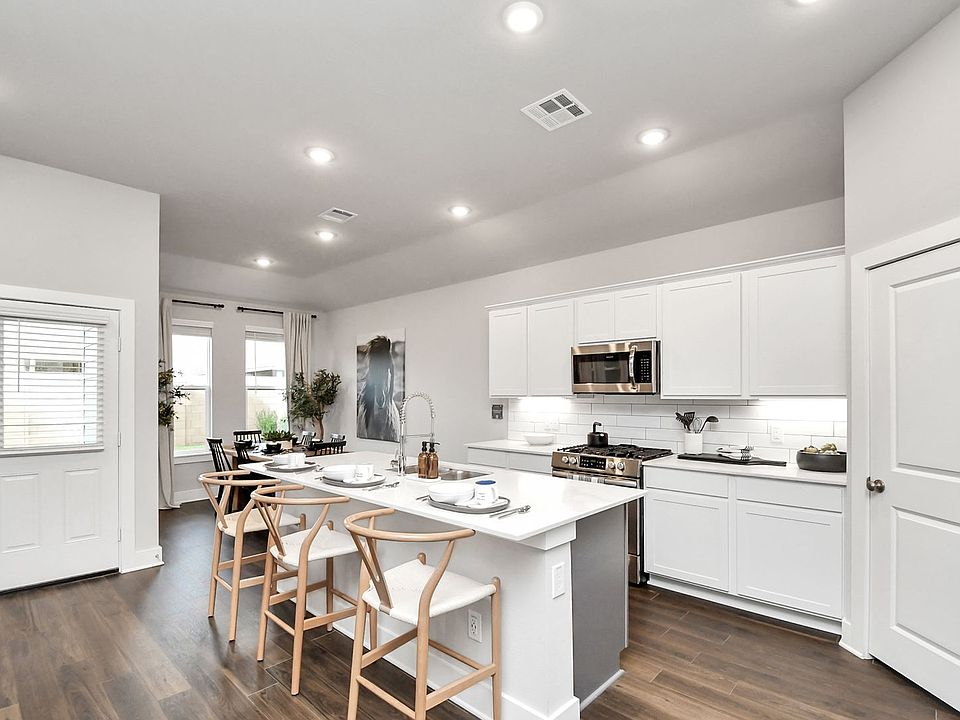 Welcome home to The Cypress, a beautifully designed residence located in one of Rosharon's most vibrant amenity-rich communities. This home effortlessly combines upscale finishes with everyday comfort featuring soaring 10' ceilings, sleek quartz countertops, modern ceiling fans, and a spacious open-concept layout.