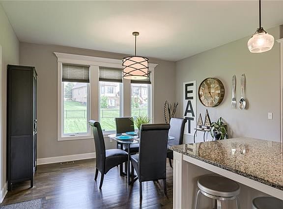 Stunning 2-story in Staley Farms subdivision!This immaculate home built by Encore has it all! Featuring A large master bedroom with vaulted ceilings , wood floors on main , upgraded appliances, custom cabinets large kitchen island and beautiful granite countertops ,walk-in pantry , formal dining, mudroom , a full finished basement with a wine closet and bonus 5th bedroom, heated garage, fully fenced large backyard , screened in back patio, sump pump, and finishes of new construction! Amenities include zero-entry pool, tennis, volleyball, & basketball courts, workout facility -All located in the Bell Prairie Elementary ,New Mark Middle and Staley High School attendance area .
