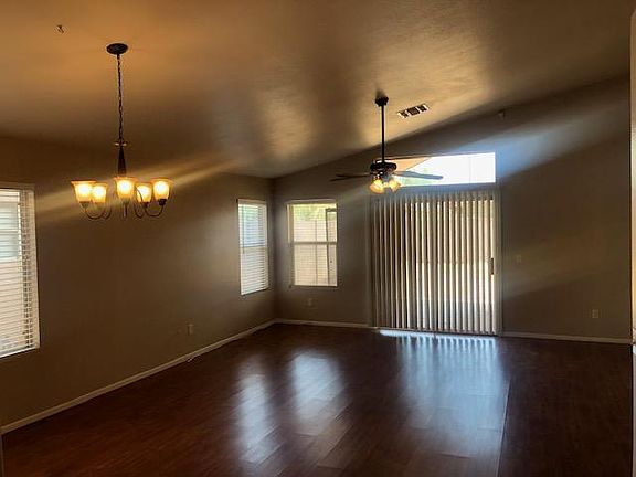 This single story 3 bed 2 bath home has new neutral paint and laminate wood flooring throughout. The kitchen looks into the spacious great room that has vaulted ceilings. This home is priced right to rent quickly.