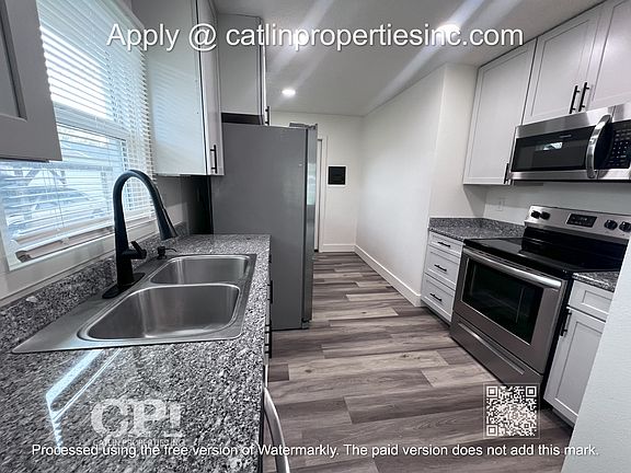 Updated 2 bedroom 1 bath duplex with attached single-car garage. Living room has new LVT flooring with fresh paint and new trim. Kitchen is completely remodeled with brand new LVT flooring, cabinets, countertop and appliances. Brand new washer and dryer included. Remodeled bathroom with everything new. Sqft is approx. 12 month lease Tenant is responsible for all utilities and yard care NO Smoking NO Pets Renter's Insurance Required.