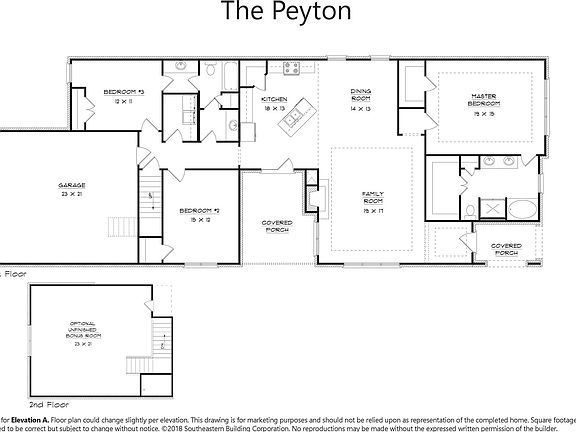 NEW PRICE! The Peyton B elevation w/stone.All bedrooms on main level, unfinished bonus room on second floor. HW in main living areas, carpet in all bedrooms. Granite counter tops in kitchen. Home faces open area with beautiful view. HOA maintained yard.