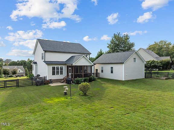 If you have been searching for a beautiful home in a GREAT subdivision with no HOA, features galore, including a 1st floor primary suite, HUGE custom detached garage with vaulted ceilings, backup generator, .93 acre lot with a HUGE fenced level backyard, you found it! This beautiful home sits on a culdesac street and is tucked away in Chesleigh, one of the sought after communities around Falls Lake in Wake Forest. This home has SO much to offer. The lot is gorgeous and well landscaped. The backyard is fenced and has a large garden/landscape shed all that can be viewed from the screened porch or patio. The home has an open concept flow between the family room and kitchen. The hardwood floors carry from the foyer through the family room and kitchen as well. The family room has a gas fireplace and plenty of seating area. The kitchen is a nice size with granite counters, a center island for those that eat-in, beautiful stainless steel appliances and plenty of cabinet space. From the kitchen and the breakfast area enjoy wonderful views of the backyard. The first floor also has a nice laundry room, updated half bath, and a large primary suite. The primary bedroom has his/her closets and separate access to the rear screened porch. The primary bath has a walk-in tiled shower and a jetted tub too! Upstairs is very spacious and lightly lived-in. 3 HUGE bedrooms all with spacious closets, a full bath with a double vanity, and a generous sized bonus room with plenty of space for any combination of game room, office, play area, and/or media space. The detached garage is custom site-built, permitted, plumbed, heated / cooled, insulated and is approx. 24' x 32' w/ 12' walls and 16' ceilings. It also comes with a 12,000lb car lift in the detached garage that is included as a part of the sale! The backyard has a large shed which is approx. 12' x 20' and the home has backup power supplied by a professionally installed and permitted 11KW Generac generator. The owners also had a 1,000 gallon LP tank installed that is owned, not leased! This property is very conveniently located to DT Wake Forest, North Raleigh, RDU, RTP and Durham and just minutes to Falls Lake. Bring your boat and park it here and enjoy the quick ride down the street to the Falls Lake boat ramps!