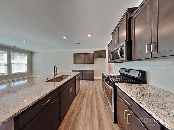 Welcome Home! This beautiful, like-new townhome in the Lake Wylie area is fresh on the market and ready for someone to make themselves at home. The main floor is made up of a spacious, open-concept area, complete with living room, dining room, and kitchen with large center island. The kitchen features granite countertops and stainless appliances (range, microwave, and dishwasher to convey).Upstairs, there is a spacious laundry room with space for additional storage, as well as two spacious guest rooms, one with direct access to the full guest bath. Completing the upper level is a massive primary suite with attached bathroom, complete with large shower, dual sinks, and a massive walk-in closet. Stop by today, you won't want to miss this one!
