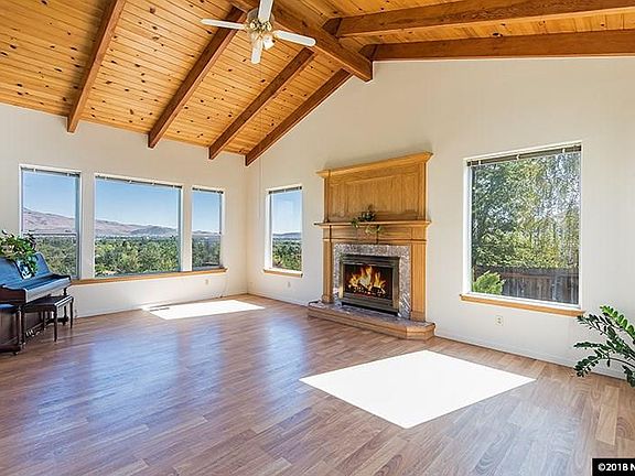 Your Stairway to Heaven! Fabulous City & Mountain Views: privacy and a little bit of heaven on 1.11 acre! Grand Living Room with vaulted wood ceilings encompassing views of the City and Sierras. Large kitchen, formal dinning room & additional great room for large gatherings, entertaining & family. 2 EnSuites -1 up with phenomenal views & 1 down, again with view and private deck plus 2 additional bedrooms upstairs. Lovely backyard pavers & level grassy areal. 3 car garage & additional parking for toys.