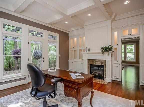 Stunning custom brick estate home on over 3 wooded acres. Located in a very desirable North Raleigh location with lots of privacy. Gourmet kitchen with huge center island, granite counter tops throughout home, a six burner gas range and double ovens. Beautiful private study with built in custom cabinets and fireplace. Master suite features a luxurious bath with stone tile, gorgeous shower and huge walk-in closet. Seller in process of obtaining CO from Wake Co for basement.