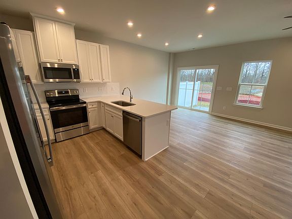 New, beautiful townhome with 3 bedrooms and 2 and half baths, LVP flooring, open floorplan. One car attached garage and 2 car off street parking. Blinds included on all windows. Spacious closets with upstairs laundry room that includes an energy efficient GE washer and dryer. New appliances in kitchen including side by side refrigerator. 2-zone central air conditioning and forced hot air heat. Great location with shopping and convenience to highway. Green space behind unit, no backyard neighbors.