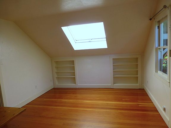 Charming, Light-filled Upper Flat in Vintage Duplex. Currently occupied. Please DO NOT disturb tenant. *Two bedroom -- OR 1 Bdrm + home-office space. *Living room has door and windows facing backyard, a big skylight, and beautiful Douglas fir flooring. *Lots of built-in storage space. *Redwood Deck in shared backyard. *One off-street parking space. included. *Bright kitchen with lots of windows, Oak cabinets, Tile counters, Gas stove, Dishwasher, Garbage disposal, Refrigerator. *Bathroom has skylight and tile shower. (NOTE: No Bathtub) *On-site, shared Laundry downstairs. *Popular Upper Glenview area is a quiet area that feels like the country, yet it's convenient to Glenview, Montclair and Grand-Lake neighborhood shops and restaurants, Trader Joe's. *Dimond Park nearby. *Easy access to Hwy 13 and 580, bus to S.F. *First full month rent plus $2800 security deposit due at lease signing. 1-year lease. *Verifiable References, Background & Credit Check Required for each applicant. $30 Application fee. *Garbage service & water is included in rent. Tenant pays PG&E. *NO pets, No smoking. *Gross income must be at least 2.5x the monthly rent * FICO credit score above 620 *Valid driver's license or government I.D. *No prior bankruptcies or evictions