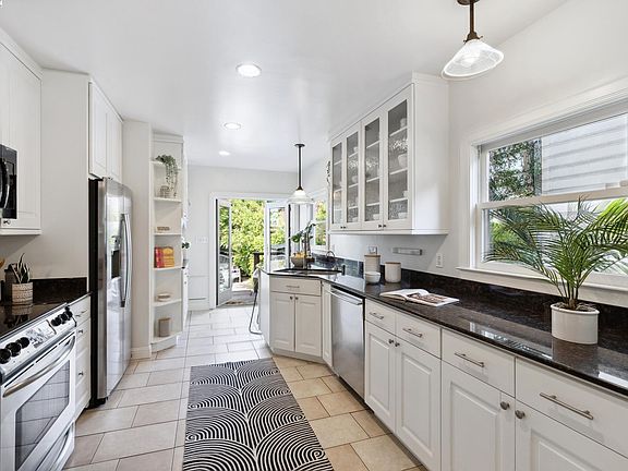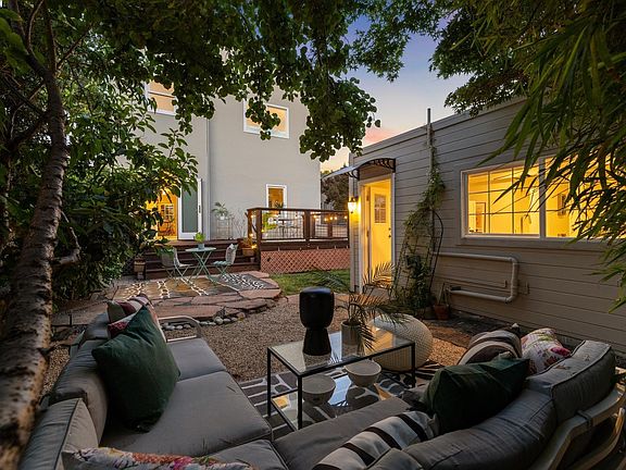A rarity in the heart of Albany: a fully upgraded Art Deco, 2-story 5BD/4BA home including a freestanding studio ADU with kitchenette and bathroom. A gracious foyer welcomes you into the 2234 SQFT home rich in architectural details. Step through an archway into the gorgeous living room with a giant mullioned picture window and statement fireplace. Off the entryway, a flexible room offers potential as a bedroom, playroom, or home office. Beautiful hardwood floors span the home, and perfect flow leads from the living room to dining room to a chef’s kitchen with stylish cabinetry and a breakfast bar. French doors open to a deck for al fresco dining. The spacious backyard is a great place for entertaining and play with a patio, lawn, storage sheds, and mature landscaping with fruiting trees. The home’s first floor is complete with a full bath and another bedroom. Upstairs opens to a family room with adjacent laundry and full split bath. Two sunny bedrooms are on one side, while the roomy primary bedroom with ensuite bath overlooks the backyard. The separate bright and airy ~300 SQFT ADU is ready for tenants, guests, or your workday. Multiple parking spaces and nearby BART offer a convenient commute while Albany’s top notch dining, shopping and public schools all down the road.