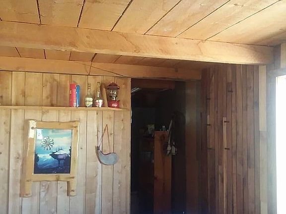 This cabin is priced to sell. It sets on five acres with views. It is a nice place to relax or try your hand at hunting or fishing nearby. It is equipped with several gas lanterns, and a large area upstairs for several guests. Come take a look and see for your self and make this seasonal, semi furnished cabin your own..