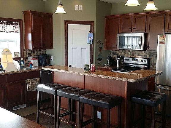Brand New Builders Model at end of cul-de-sac with all the bells and whistles. 5 Bedrooms 3 baths, 9ft Ceiling, solid white 2panel doors with very wide cherry finished trim and cabinets. Snack bar, walk in pantry full set of stainless steel appliances, upgraded floor coverings, oil rubbed bronze faucets, lights and lever handles. Master bath with large shower, tiled soaker tub, twin vanities and large walk in closet. Ample and extra large Anderson windows with grids and white faux blinds. Oversized 2 car garage with storage, finished basement with bath, bedroom, rec room, play room, theater room and 2 egress windows for natural light and safety. Great county setting and a must see at this kind of price!