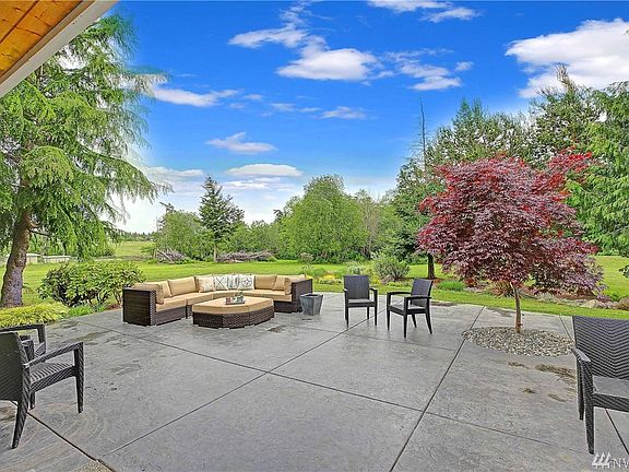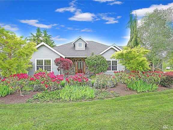 This 5 acre piece of paradise has manicured landscaping views of Mt. Baker gardens galore Over 3,000 sq ft of living all Bedrooms on the main floor large master w/fireplace and walk in closet heated bathroom floor recently updated through out all bathrooms and kitchen with new Quartz and SS appliances Formal dinning area with 9 Ft Ceilings Newer heating system w/tank less hot water Large onus room above over sized double garage One of a kind North End home 15 Min to I-5 close to beaches