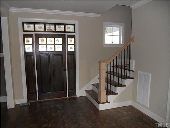Custom details throughout home. Hardwood on first floor. Coffered ceilings in dining room. His and her walk in closets in master suite. Flat private homesite backs up to open space. 5 Bedrooms plus huge bonus room. Walk in storage on third floor. Deep garage for extra storage.