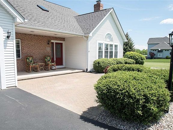 Sparkling Cape all set on Private 1.38 acre lot! First floor master suite, modern and updated, quartz kitchen counters, great room with heatolater fireplace, additional 1400+/- Sq' of finished 13 course basement with 2 bedrooms, full bath, family room, stairs to garage and egress windows. Dream garage is 2 car wide 20' X 43' holds 4 cars, 8' high O.H door. Zoned heating, deck, patio, easy access to 390 and parkway. Seller to only provide permits currently on file with Town Of Greece.