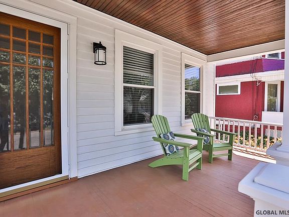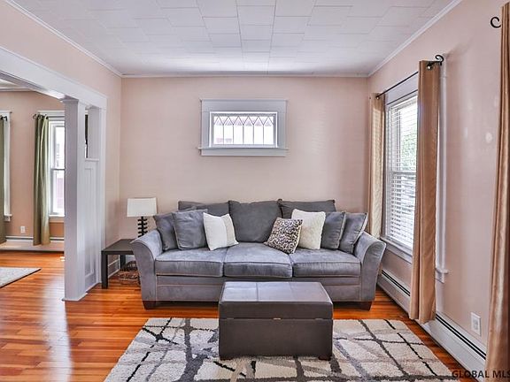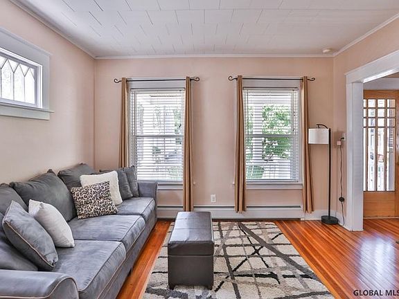 This lovingly updated home offers a gorgeous new white kitchen with 42" cabinets and crown trim, quartz counters, stainless modern-farmhouse sink, gas range. Storage galore with floor to ceiling pantry, bonus cabinets and a backpack/mudroom area. Large, formal dining room. Refinished hardwood floors throughout. New full bath with tile enclosure. Home office. Full, walk-up attic could be an amazing bonus room! Outside space is ideal for entertaining. Large, fenced backyard with perennial gardens and a patio with brick fireplace right off the kitchen. Freshly painted siding. New windows('13) Navien High Eff. Boiler('17) Newer roof. New driveway('21). Walk to Upper Union St. shops & dining! Convenient to Ellis Hospital and Union College