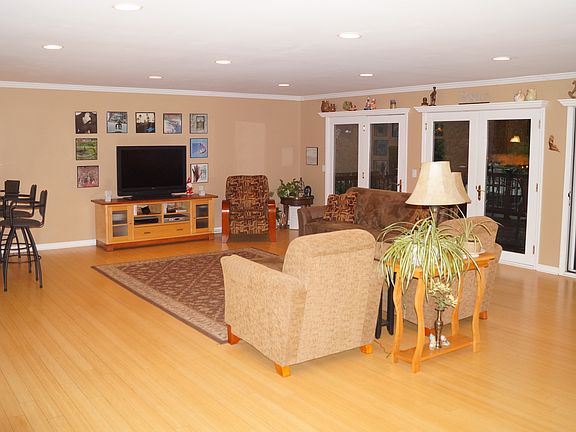 Immaculately kept single level all brick home features hardwood floors, spacious living room with gas fireplace, tons of natural light. Updated and open kitchen w/SS appliances, custom cabinets. Formal dining room. Large primary w/ en-suite, double vanities. Private tree lined lot w/ fenced in yard for kids or pets to run and play! 2 oversized garages. Full finished basement perfect for teens or in-laws. 2 slip boat dock 10' wide electric lift.