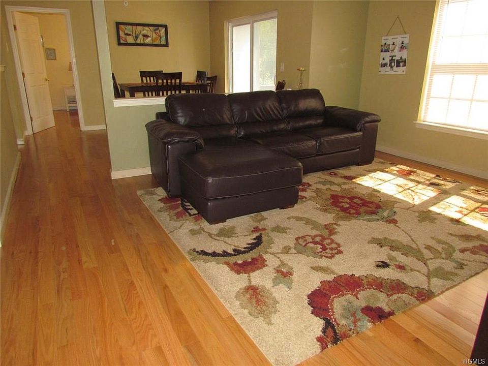 Meticulously maintained and updated end unit - 2 bedroom that offers additional room perfect for an office. Master Bedroom in suite, kitchen with granite countertops and recessed lighting, new wood floors throughout, newer sliding door with built in blinds lead to a deck off the dining area, Retractable awning on the deck. Wonderful cathedral ceiling and open floor plan. Freshly painted, new washer and dryer. Not to mention, LOW Taxes! Nothing to do, but move in. Enjoy the clubhouse, community pool, tennis courts, tot lot. Very convenient location, close to I84, NY Thruway, Metro-North Hudson Line, Short Line Bus to NYC.