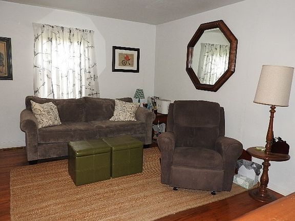 Come home to this adorable house that feels much bigger than it looks with a great floor plan. You'll feel right at home starting at the covered front porch. The house is warm, inviting, and comfortable with original hardwood floors throughout living room and bedrooms. Eat-in kitchen is spacious and features a 4-stage water purifier system. Laundry room features a stackable washer and dryer(new in 2015) that stays with the new home owner. Full bath upgrade in 2016; everything new except the bathtub. IKEA wardrobe in bedroom stays. New gutters and paint outside in 2016. Also features a one car garage with new doors in 2016. Spacious backyard with fire pit